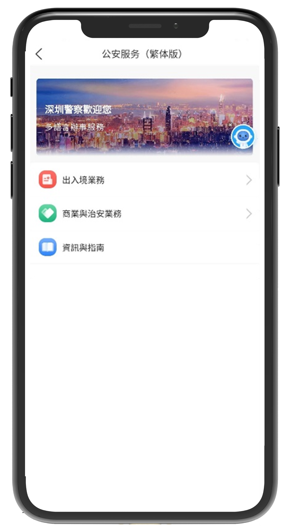 「广东政务服务网」(网页版) 「粤省事」流动应用程式 「i深圳」流动应用程式 (只提供简体中文版本)